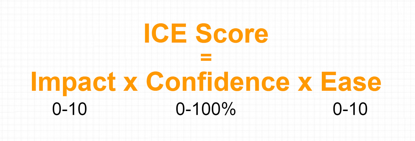 ICE Score = Impact x Confidence x Ease
